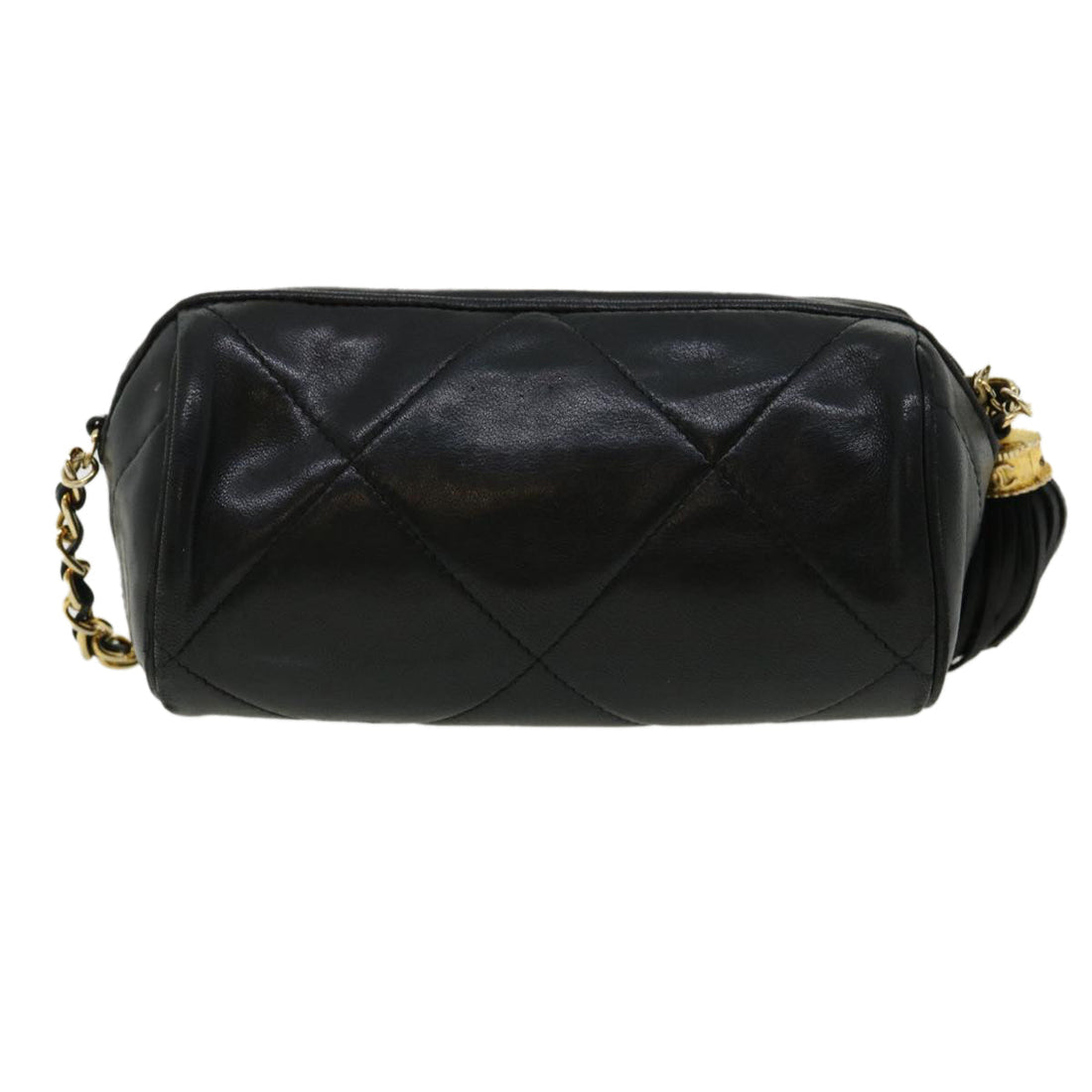 Chanel COCO Mark FringeChain Shoulder Bag Lamb Skin Black CC Auth knn088