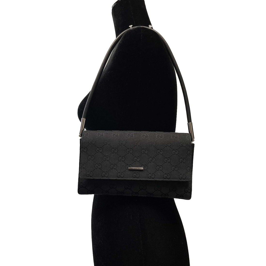 GUCCI - Black GG Monogram Canvas Shoulder Bag