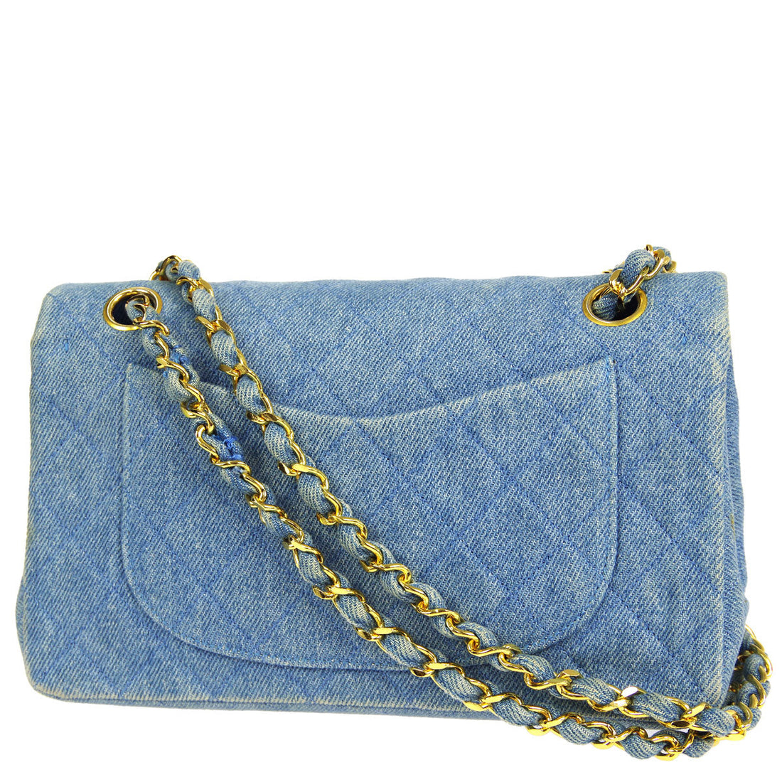 Chanel Chain Shoulder Bag Denim Blue Gold Hardware Vintage Matelasse