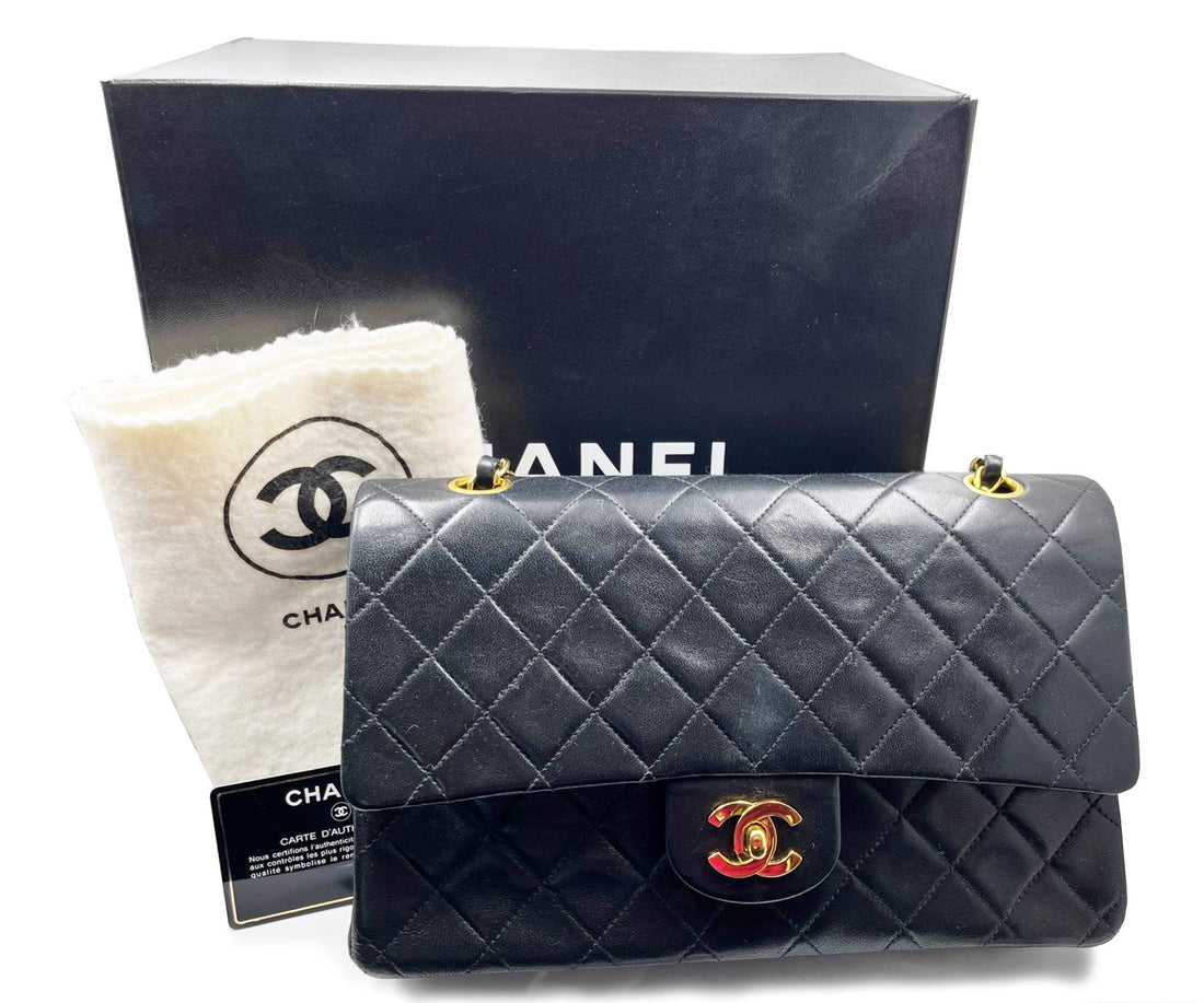 CHANEL Vintage Classic Timeless Double Flap Lambskin 10" Shoulder Bag