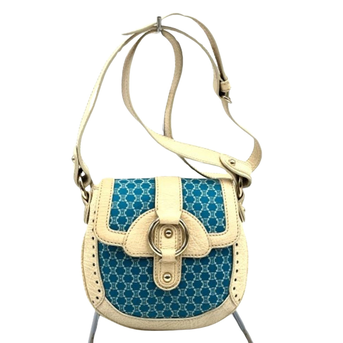 CELINE Macadam Canvas Shoulder Bag Turquoise Blue Silver Auth 85440BRAND : CELINE Color : Turquoise...