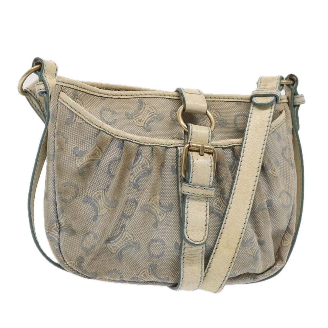 CELINE C Macadam Canvas Shoulder Bag Leather Light Blue White gold Auth bs16956