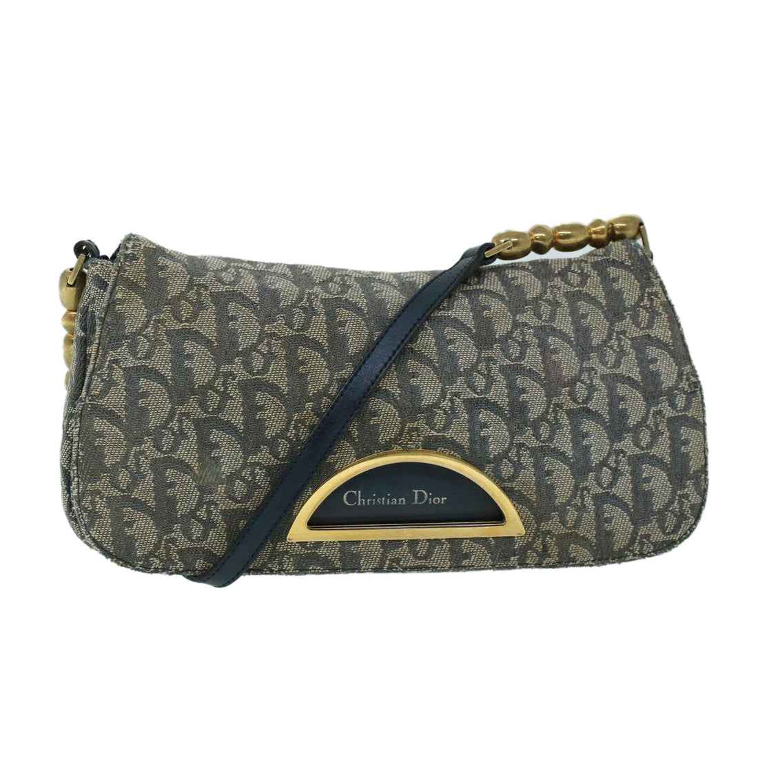 CHRISTIAN DIOR Trotter Canvas Maris Pearl Shoulder Bag Navy Auth 53747BRAND : Christian Dior Color...
