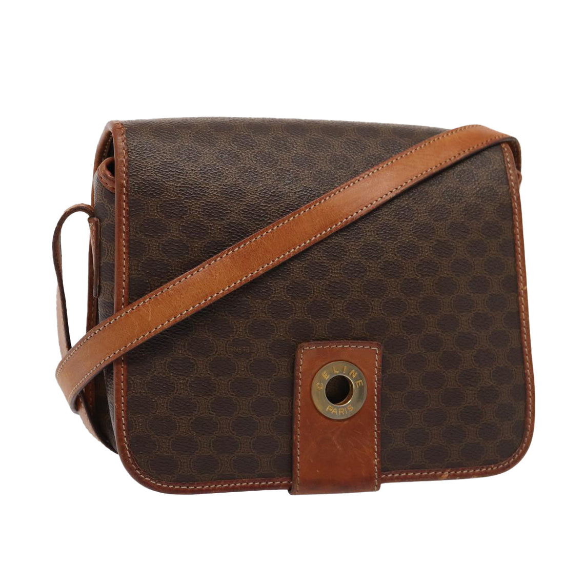 CELINE Macadam Canvas Shoulder Bag PVC Leather Brown Gold Auth 85902BRAND : CELINE Color :...