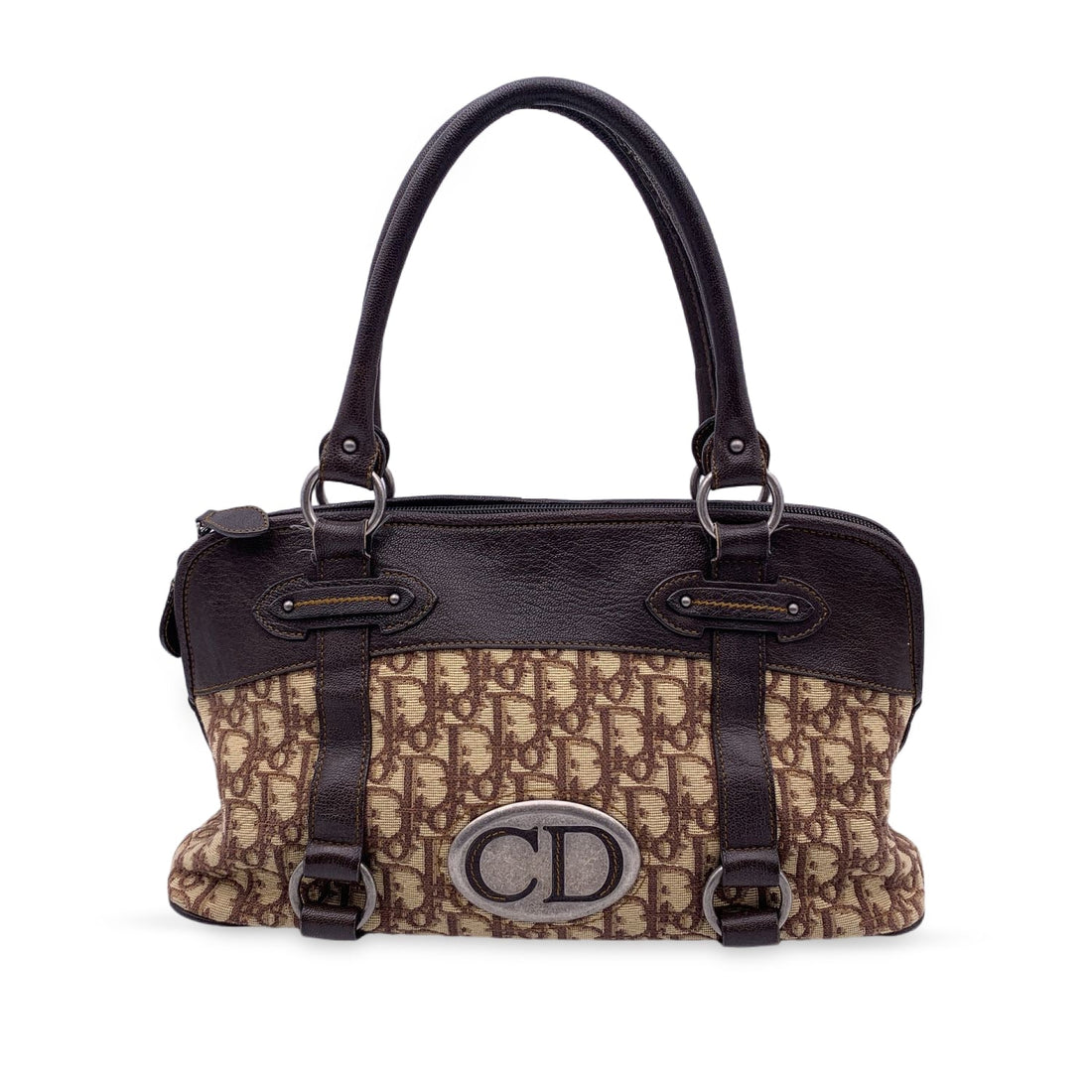 CHRISTIAN DIOR Brown Logo Oblique Canvas Satchel Shoulder Bag