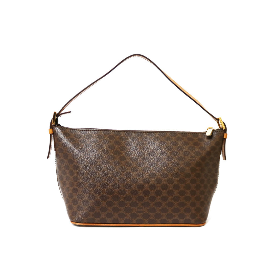Celine Macadam Canvas Shoulder Bag PVC Leather Brown 40101