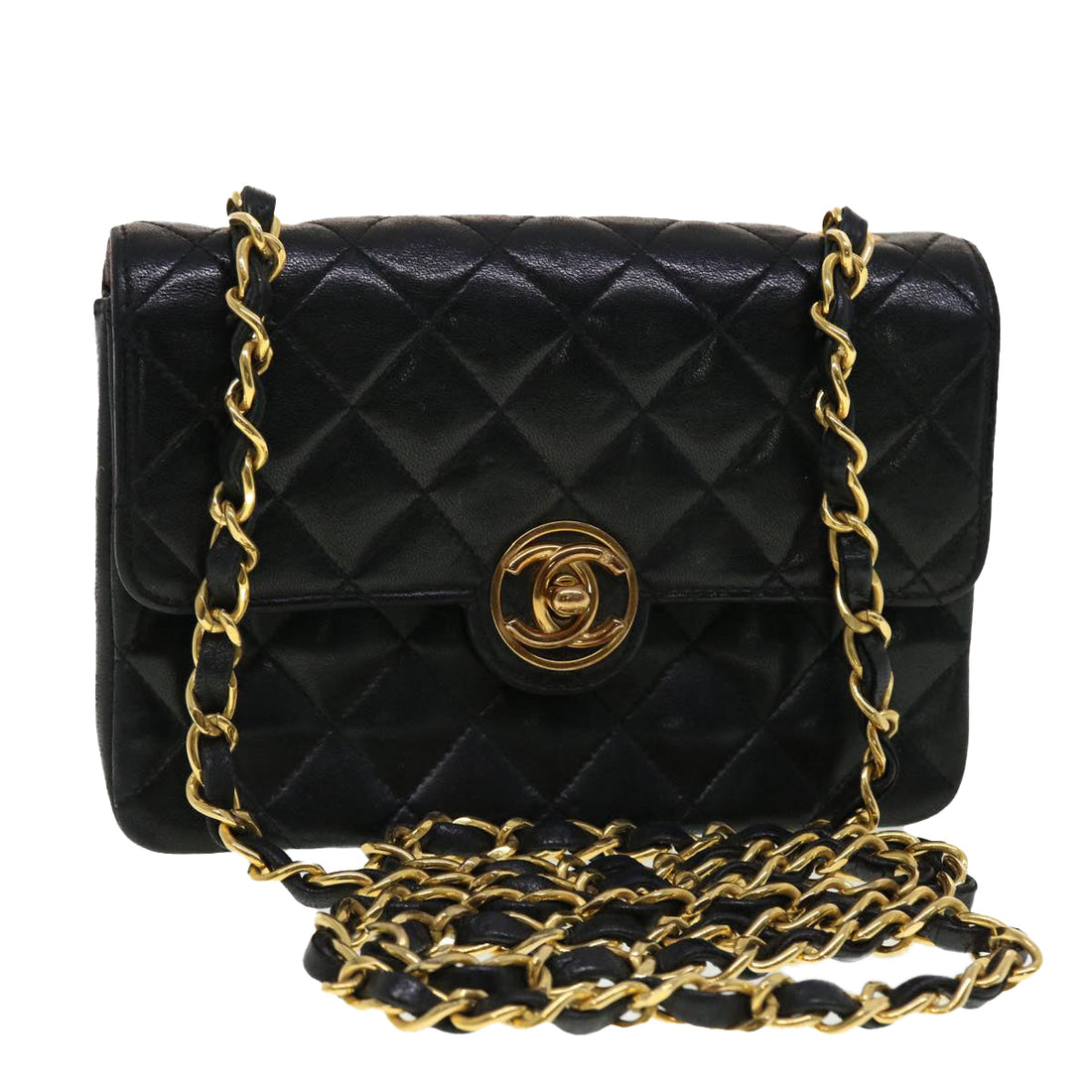 CHANEL Mini Matelasse Chain Shoulder Bag Lamb Skin Black CC Auth 42862ABRAND : CHANEL Color...