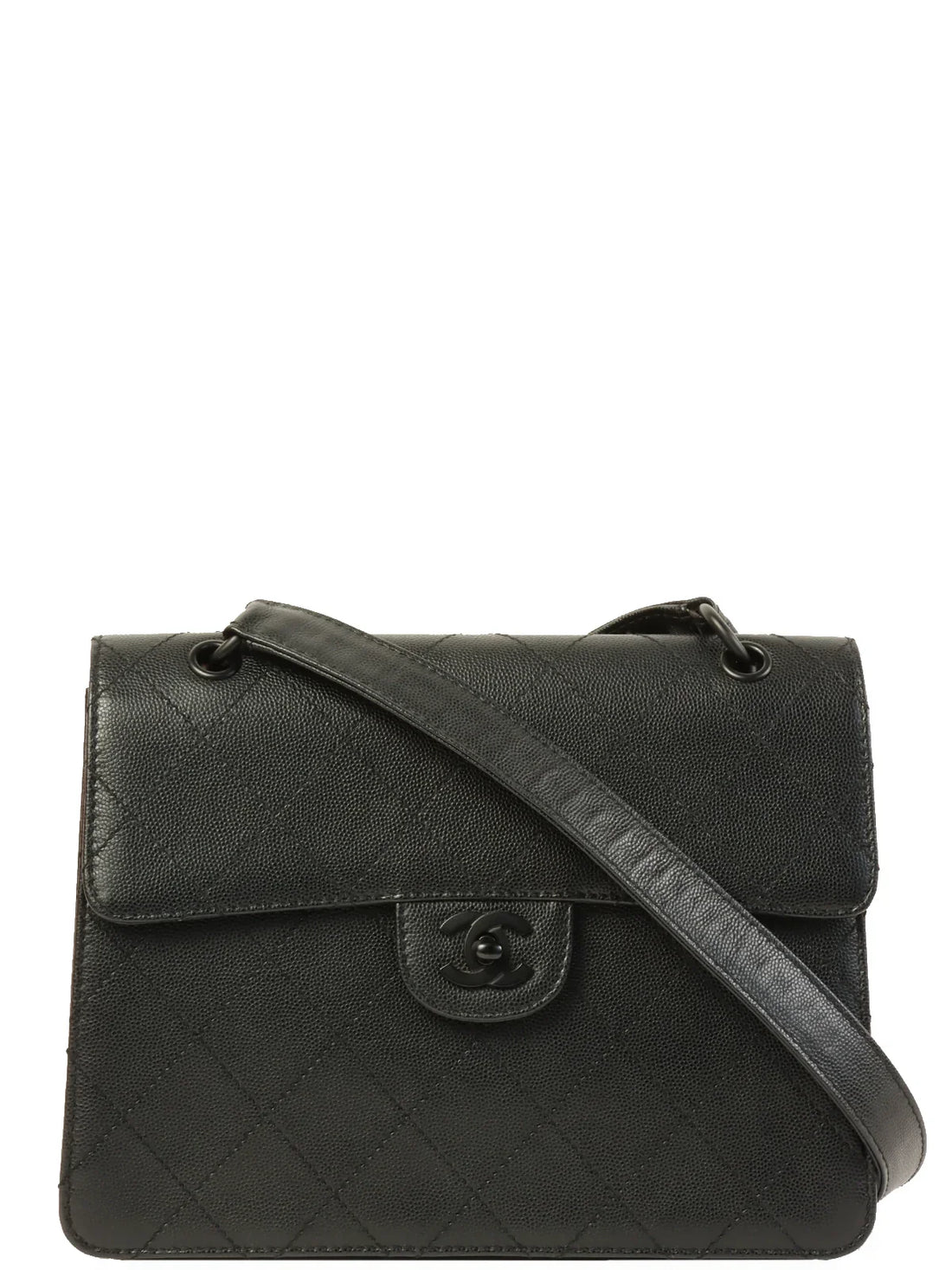 CHANEL Around 1998 Made Caviar Skin Turn-Lock Shoulder Bag BlackMeasurements: H 19cm W 25cm D...