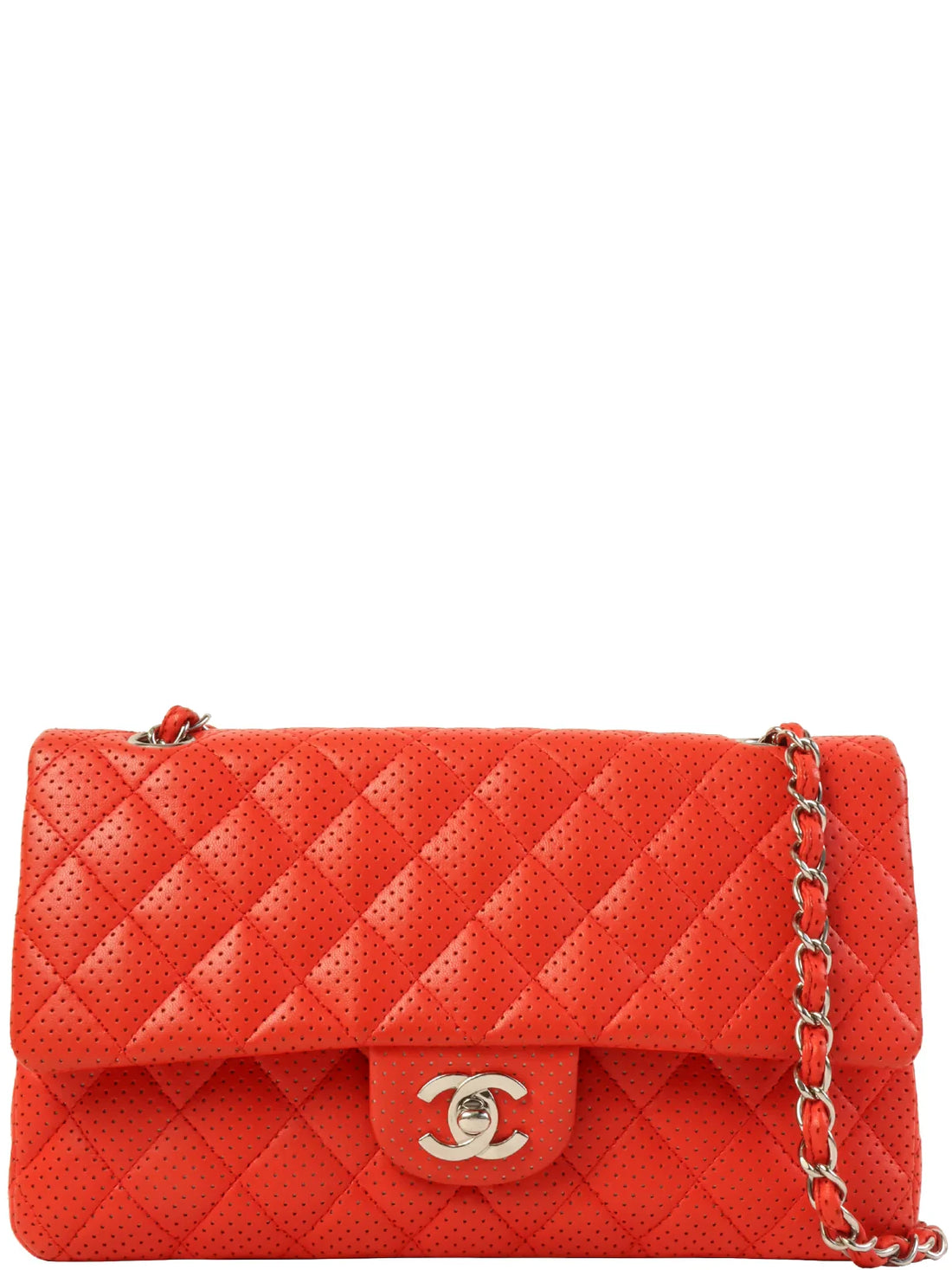 CHANEL Around 2007 Made Punching Leather Turn-Lock Chain Shoulder Bag RedMeasurements: H 15cm W 25cm...