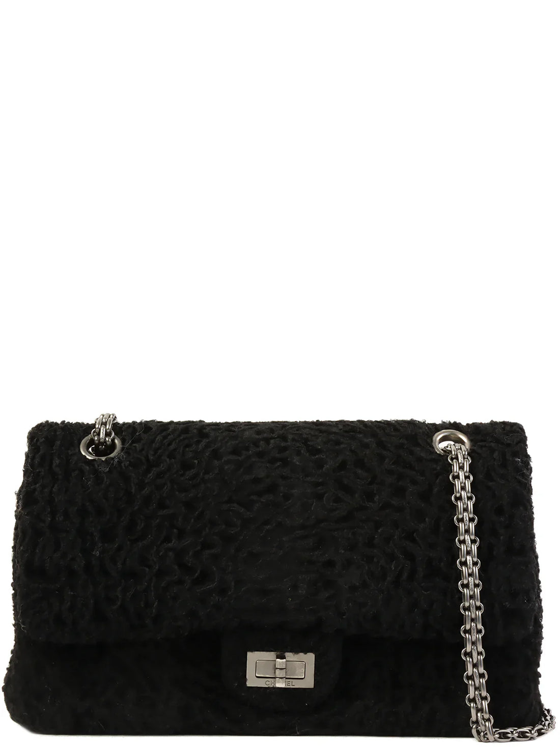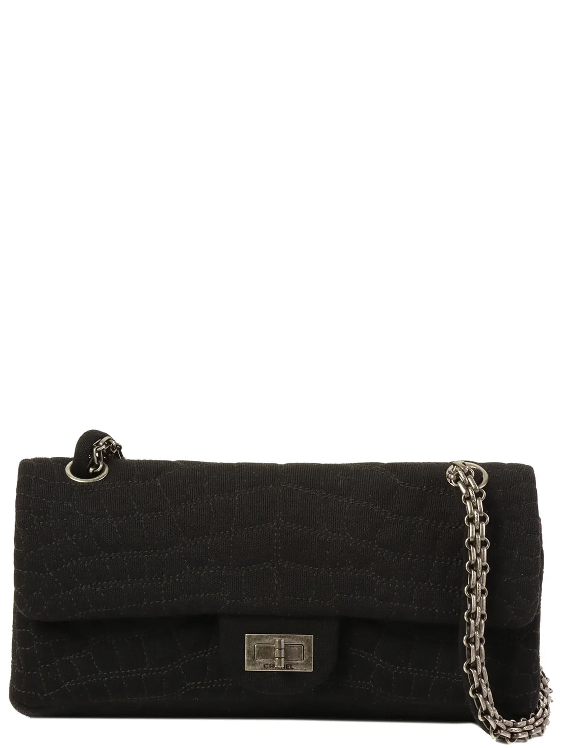 CHANEL Around 2007 Nmade Cotton Crocodile Stitch 2.55 Chain Shoulder Bag Black
