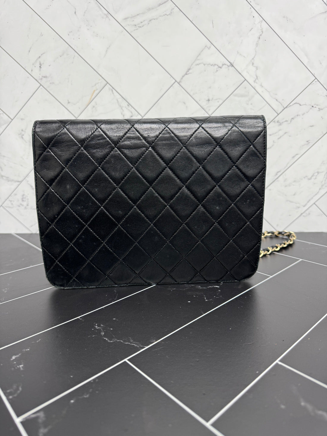 Chanel Vintage Black Lambskin Leather Single Flap Pocket Chain Shoulder Bag