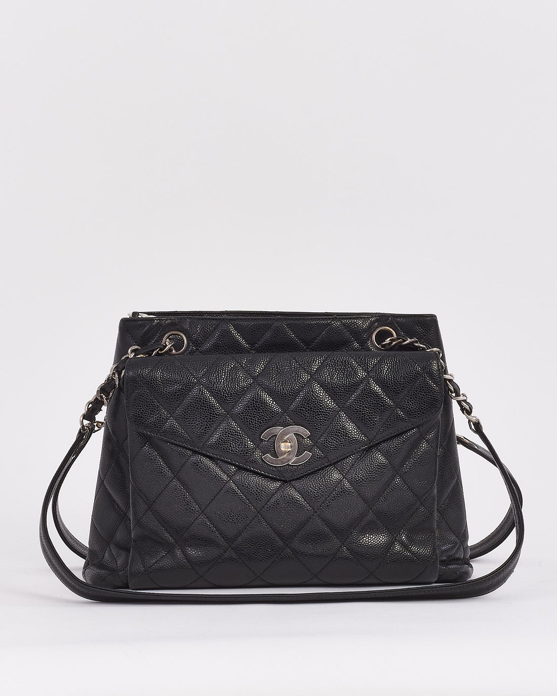 Chanel Vintage Black Caviar Leather Front Pocket Shoulder Bag
