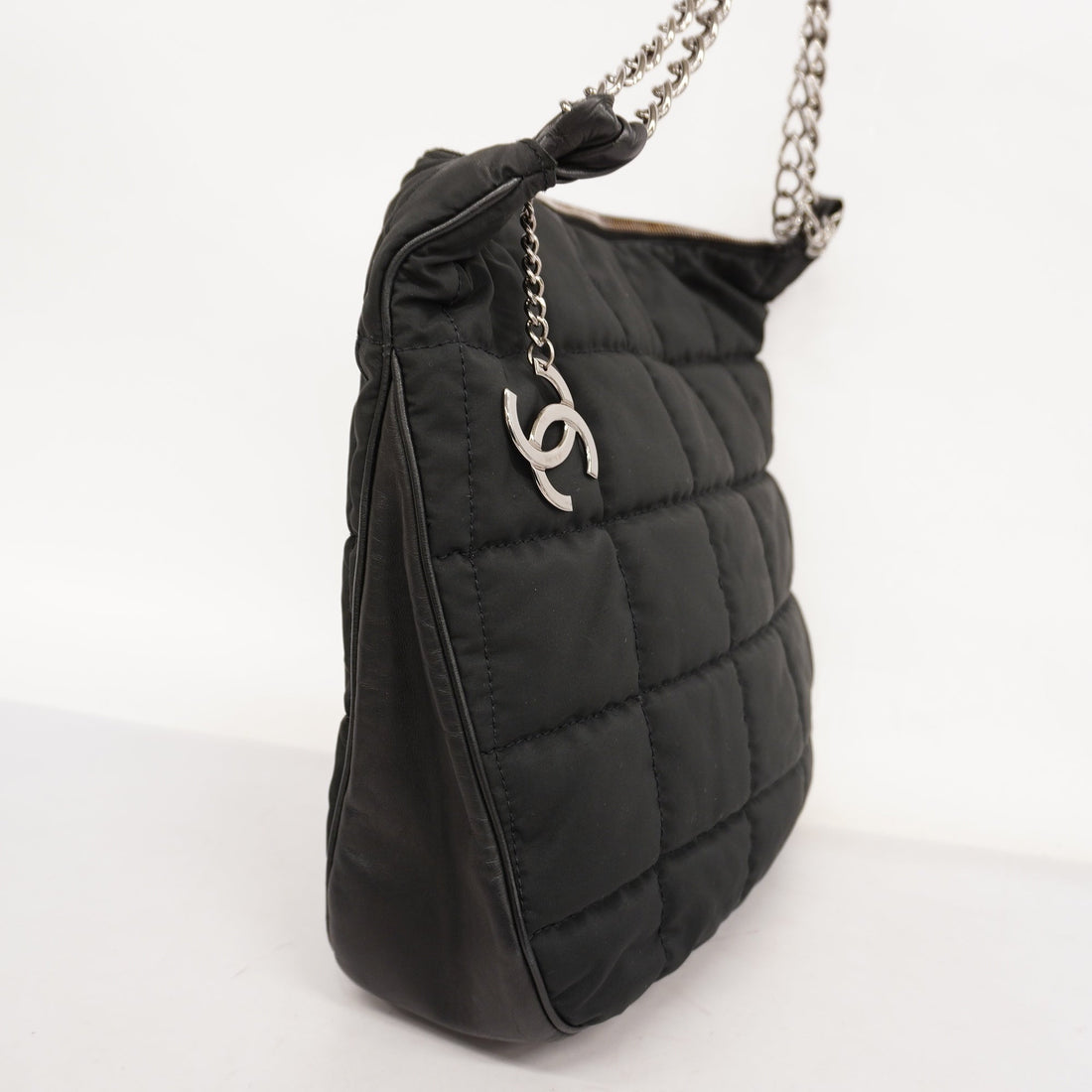 ChanelAuth Chocolate Bar Chain Shoulder Women's Nylon Shoulder Bag Black