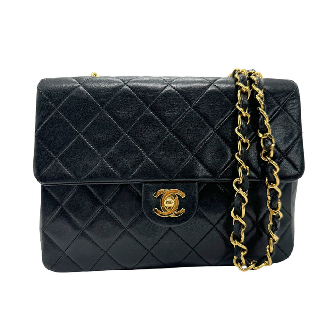 CHANEL Shoulder Bag Lambskin Black Gold Women's z1848