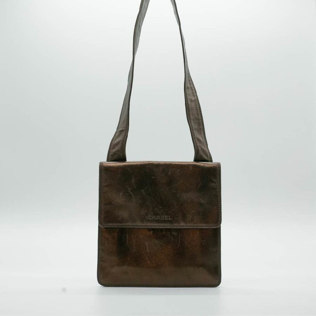 CHANEL Shoulder Bag Square Sacoche Lambskin Brown Gold Men's Women's P16200 PD23