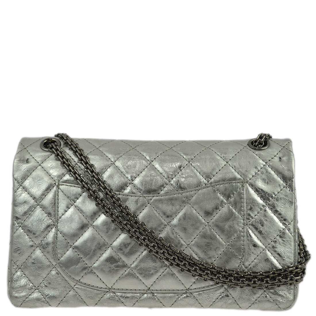 Chanel Silver Lambskin 2.55 Classic Double Flap Shoulder Bag