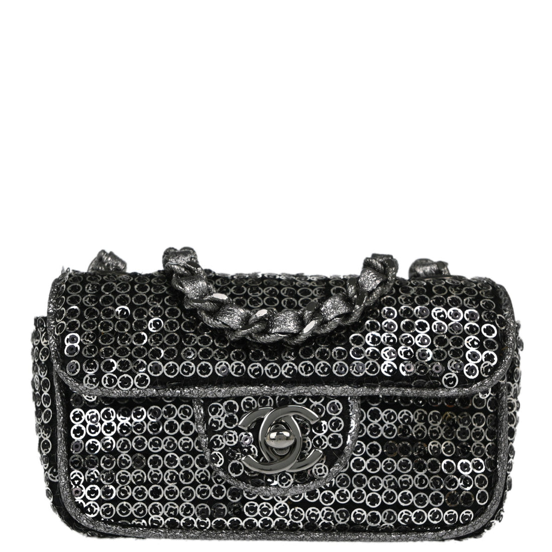 Chanel Silver Black Sequins Classic Single Flap Shoulder Bag