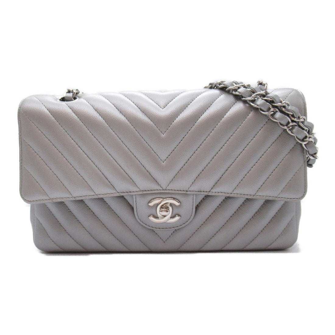 CHANEL V-stitched ChainShoulder Silver Caviar Skin (Grained Calf)