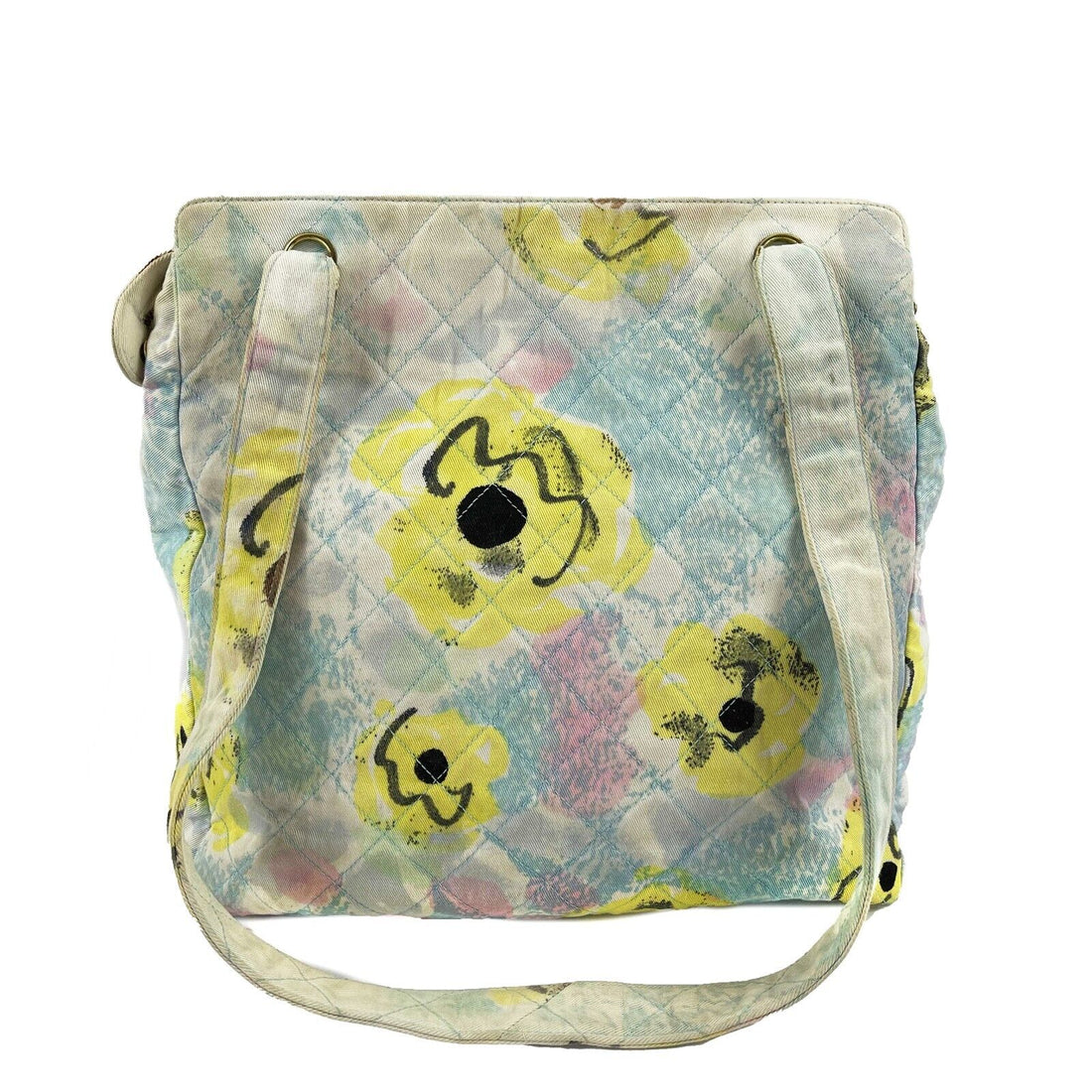 CHANEL - Vintage 1990's Graphic Multicolor Medium Camellia Print Shoulder Bag Measurements *...