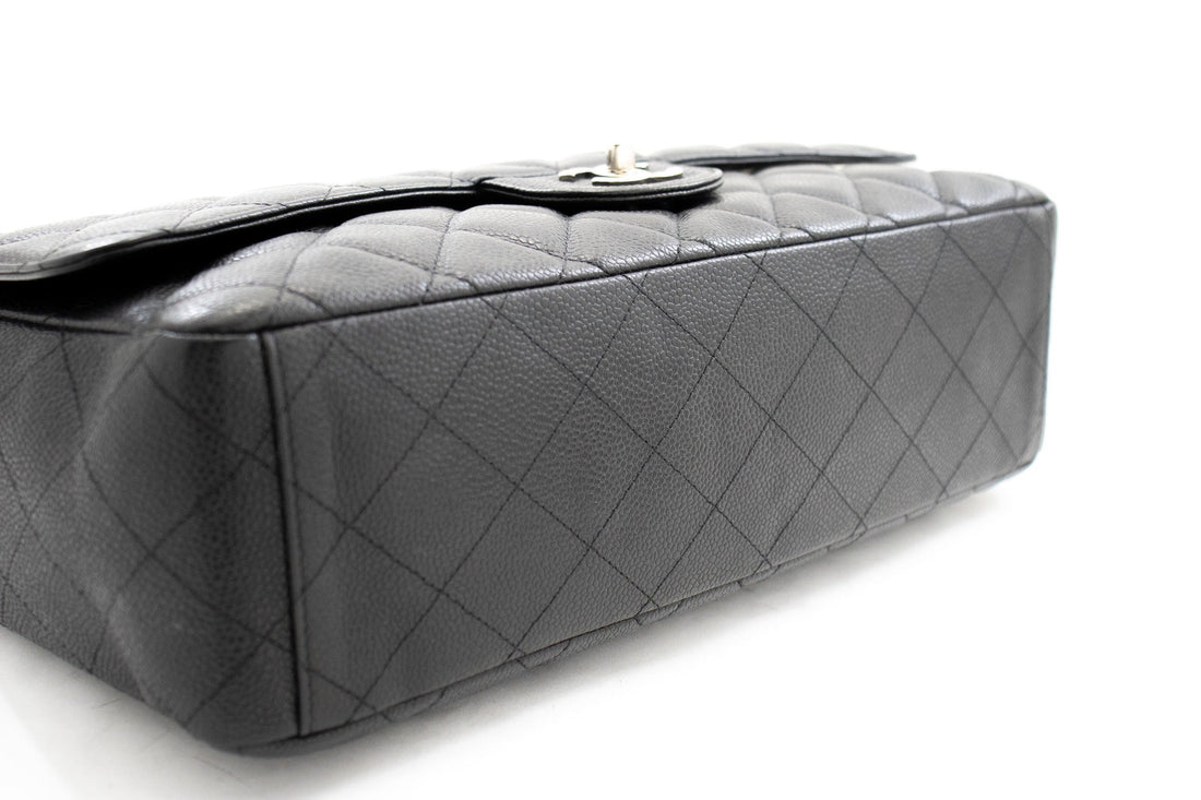 CHANEL Caviar Grained Calfskin Flap Chain Shoulder Bag Black 13" i90