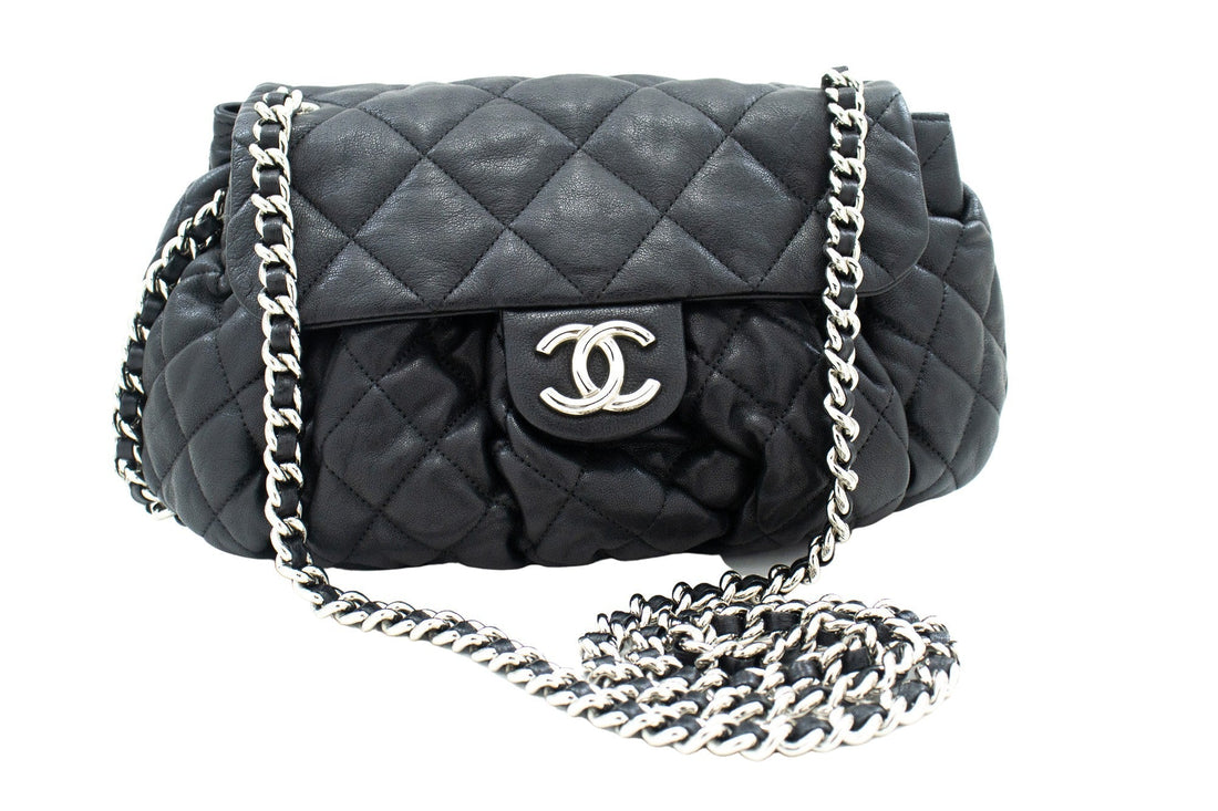 CHANEL Matelasse Chain Shoulder Bag Suede Light Blue CC Auth 69060A