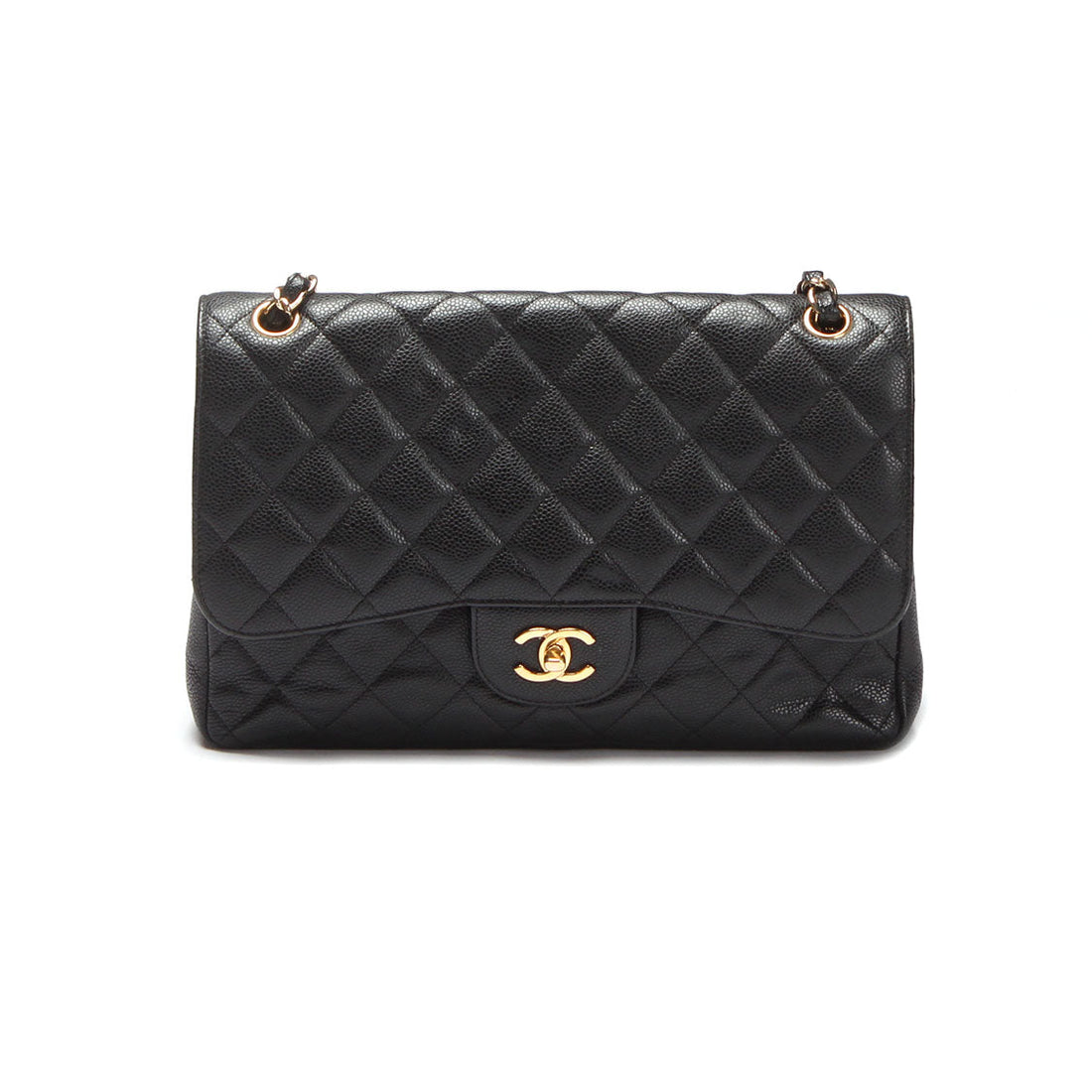 Chanel Caviar Jumbo Classic Flap Bag Leather Shoulder Bag in Excellent condition