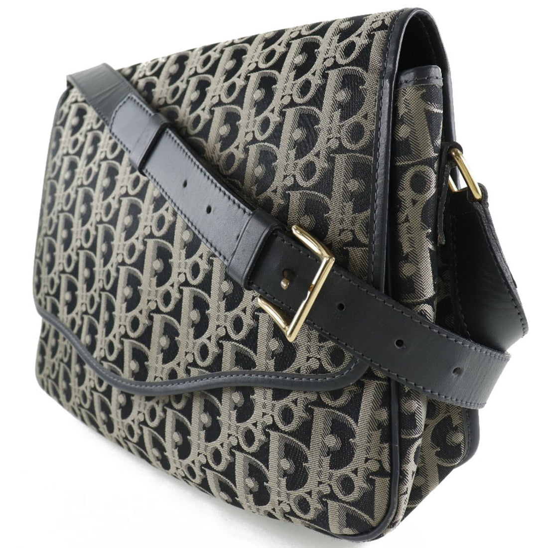 Christian Dior Trotter Nylon Canvas x Leather Black Women's Shoulder Bag