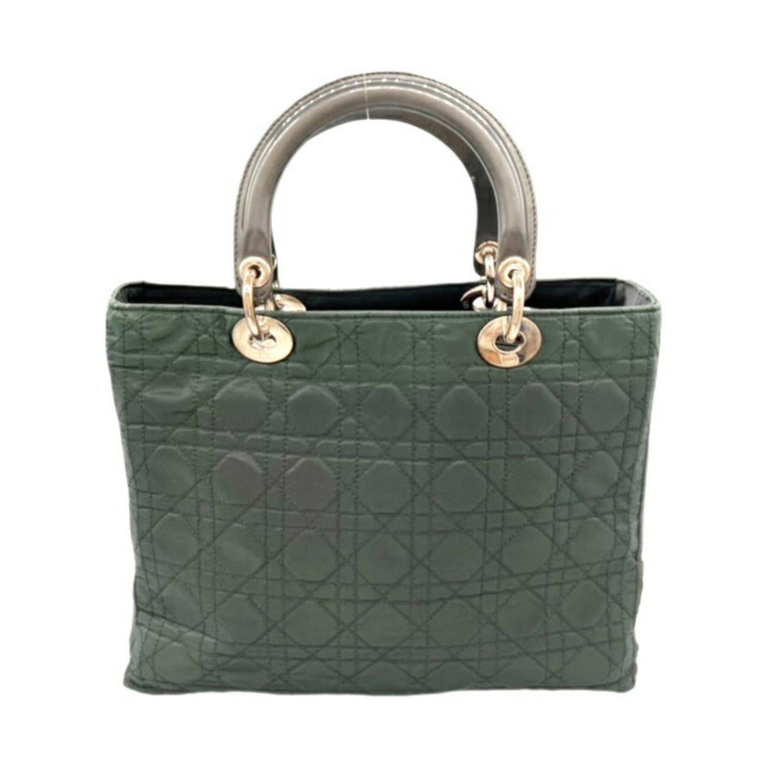 Christian Dior Dior Lady Cannage Large Nylon Khaki Gray S Hardware RU1010 HandBag Bag Shoulder...