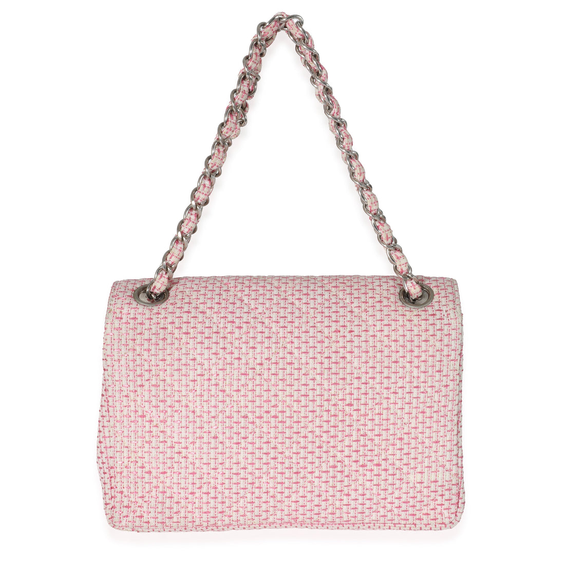 CHANEL Woven Raffia Pink White Small CC Shoulder Flap Bag