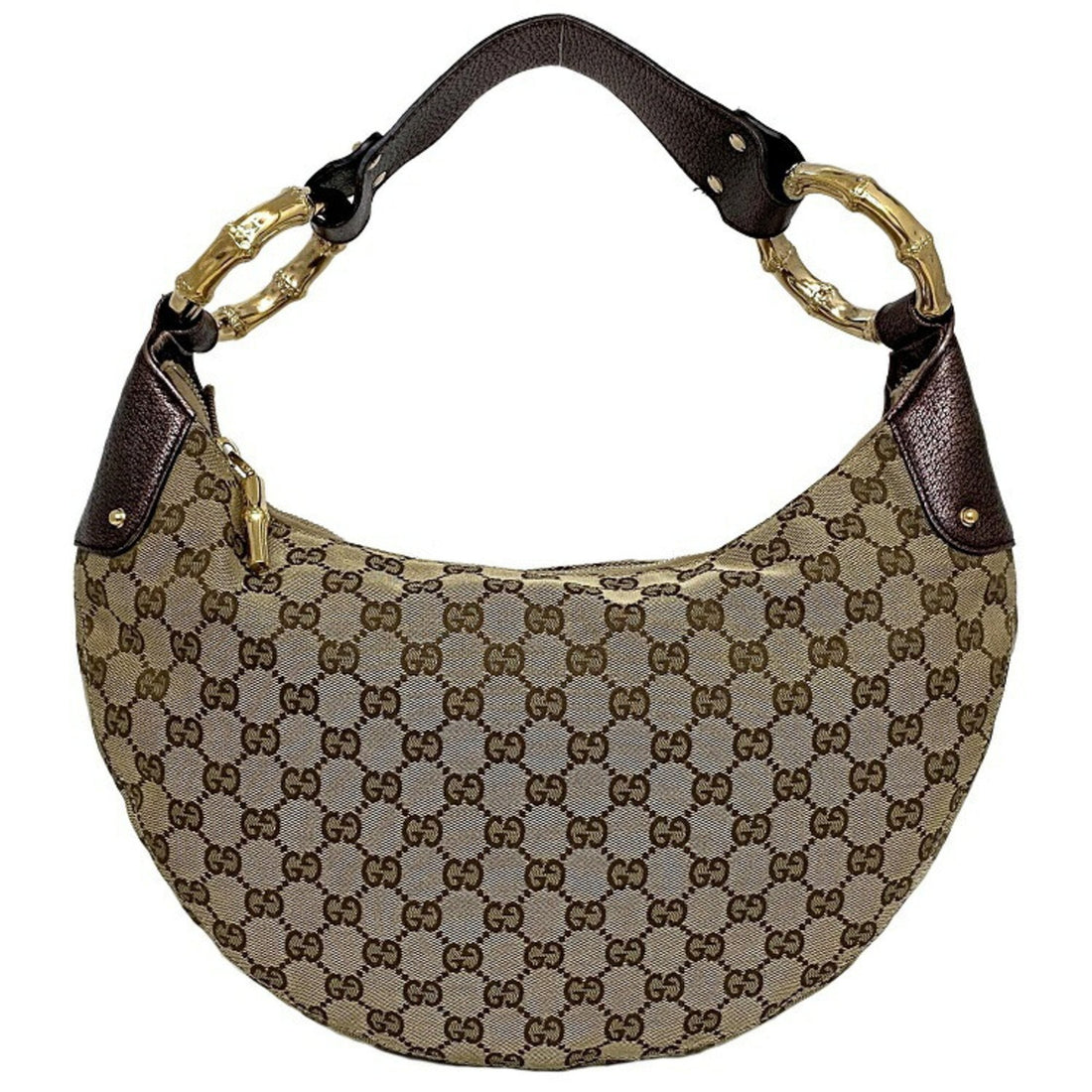 Gucci One Shoulder Bag Beige Purple Gold GG 131038 Bamboo Canvas Leather GUCCI Handbag Metallic...