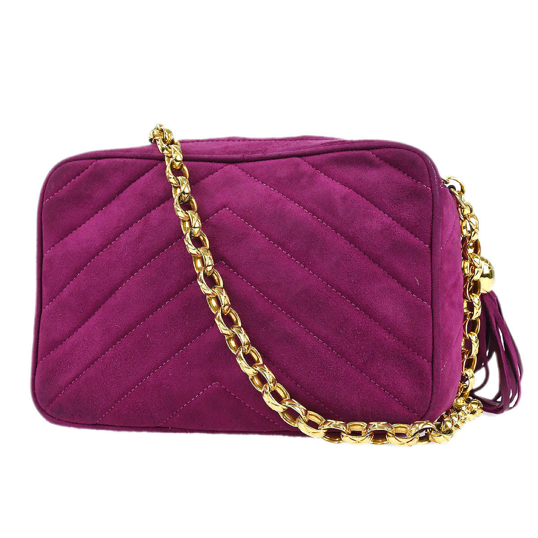 CHANEL V Stitch Fringe Bijou Chain Shoulder Bag Purple Suede 88343