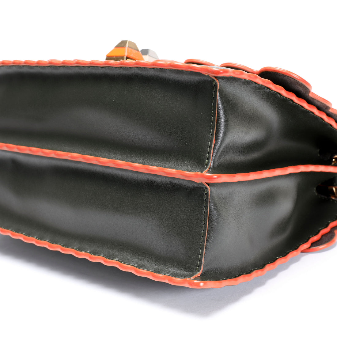 FENDI Verde Vitello Liberty Leather Studded Kan I Medium Shoulder Bag