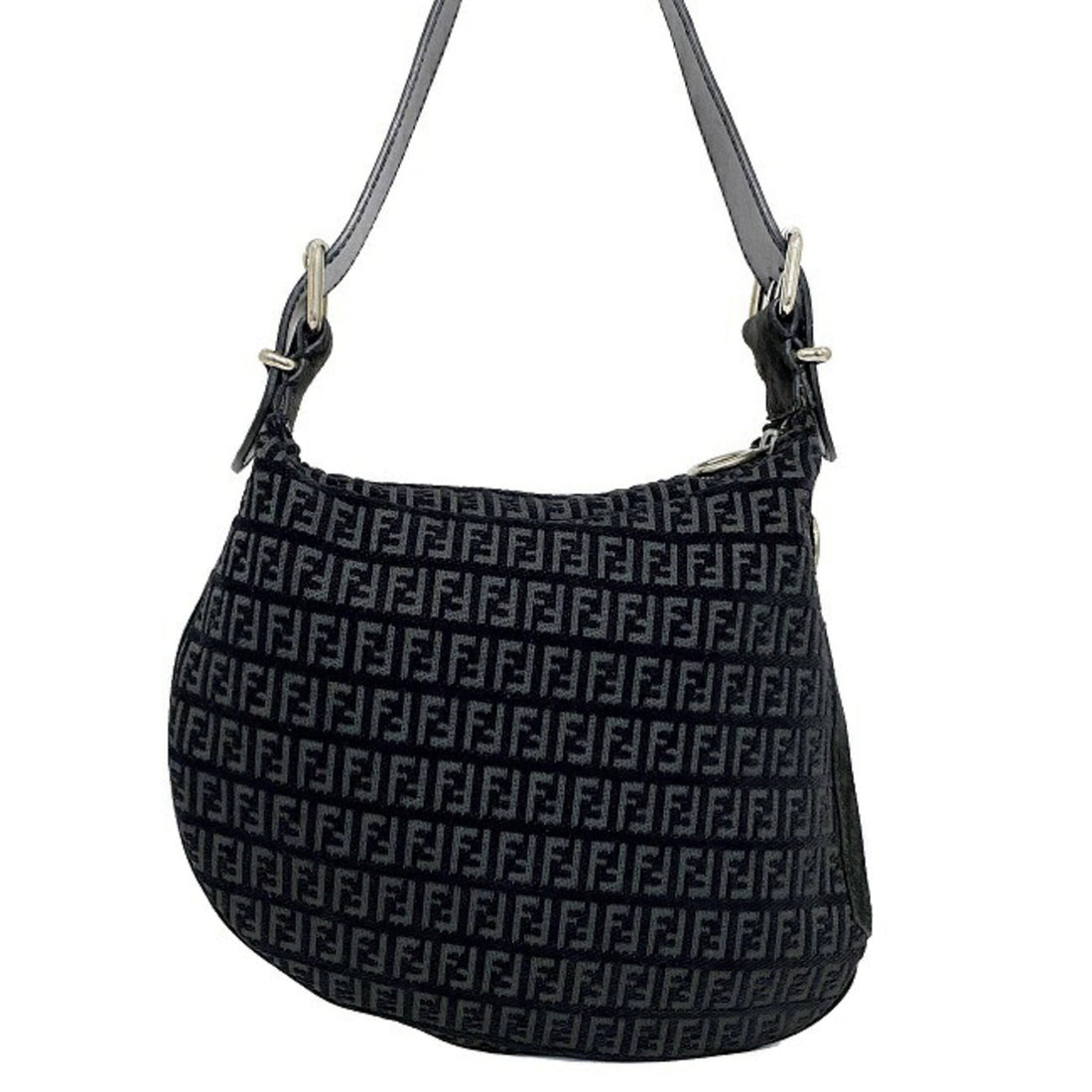 Fendi One Shoulder Bag Black Silver Zucca Suede Leather FENDI Handbag Women's