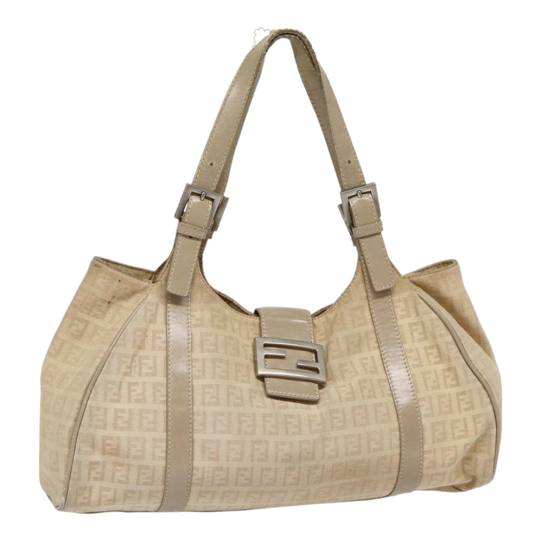 FENDI Zucchino Canvas Shoulder Bag Silver Beige Auth 87811BRAND : FENDI Color : Silver /...