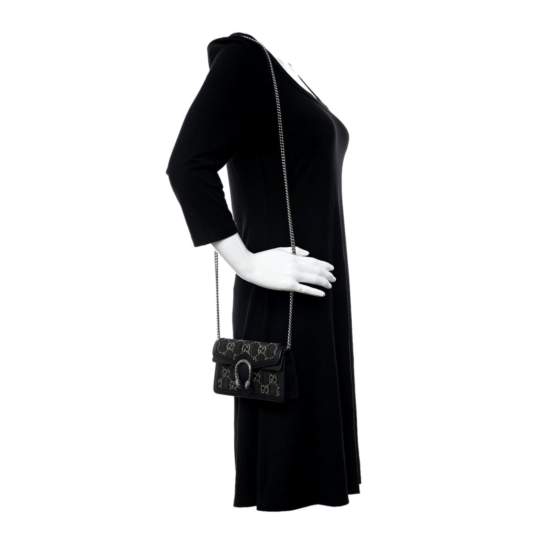 Introducing the Gucci Dionysus Black GG Denim Super Mini Shoulder Bag (476432). Crafted with meticulous...