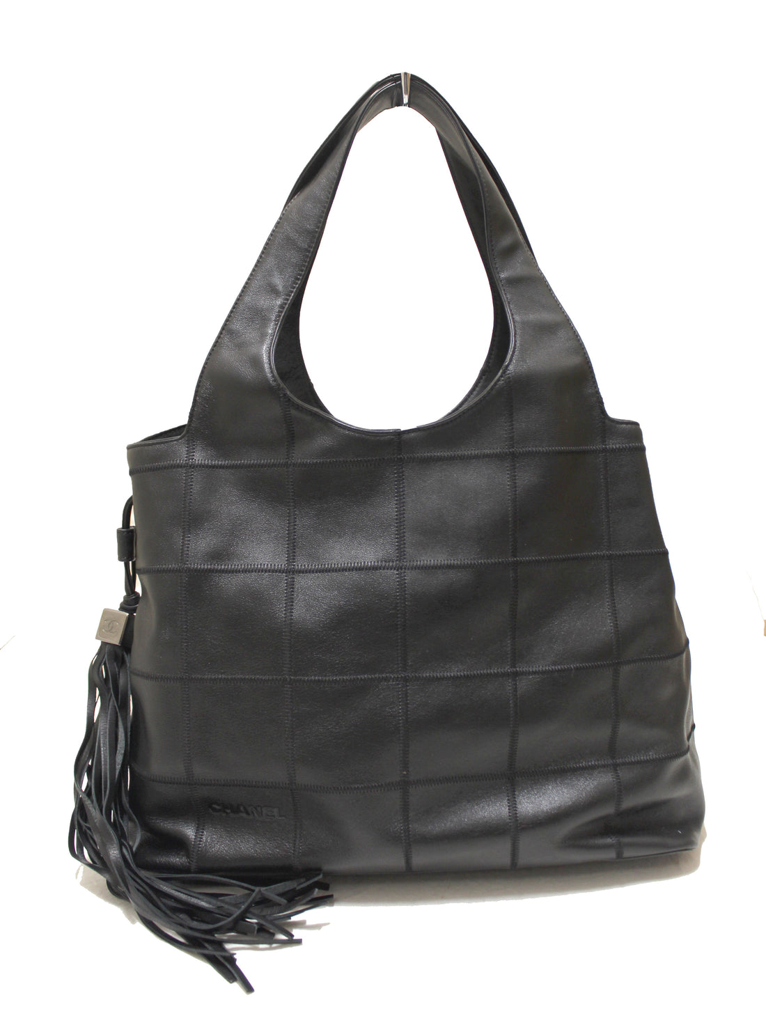 Chanel Square Stitch Tassel Hobo bag new condition Black leather with square stitching, silver toned...