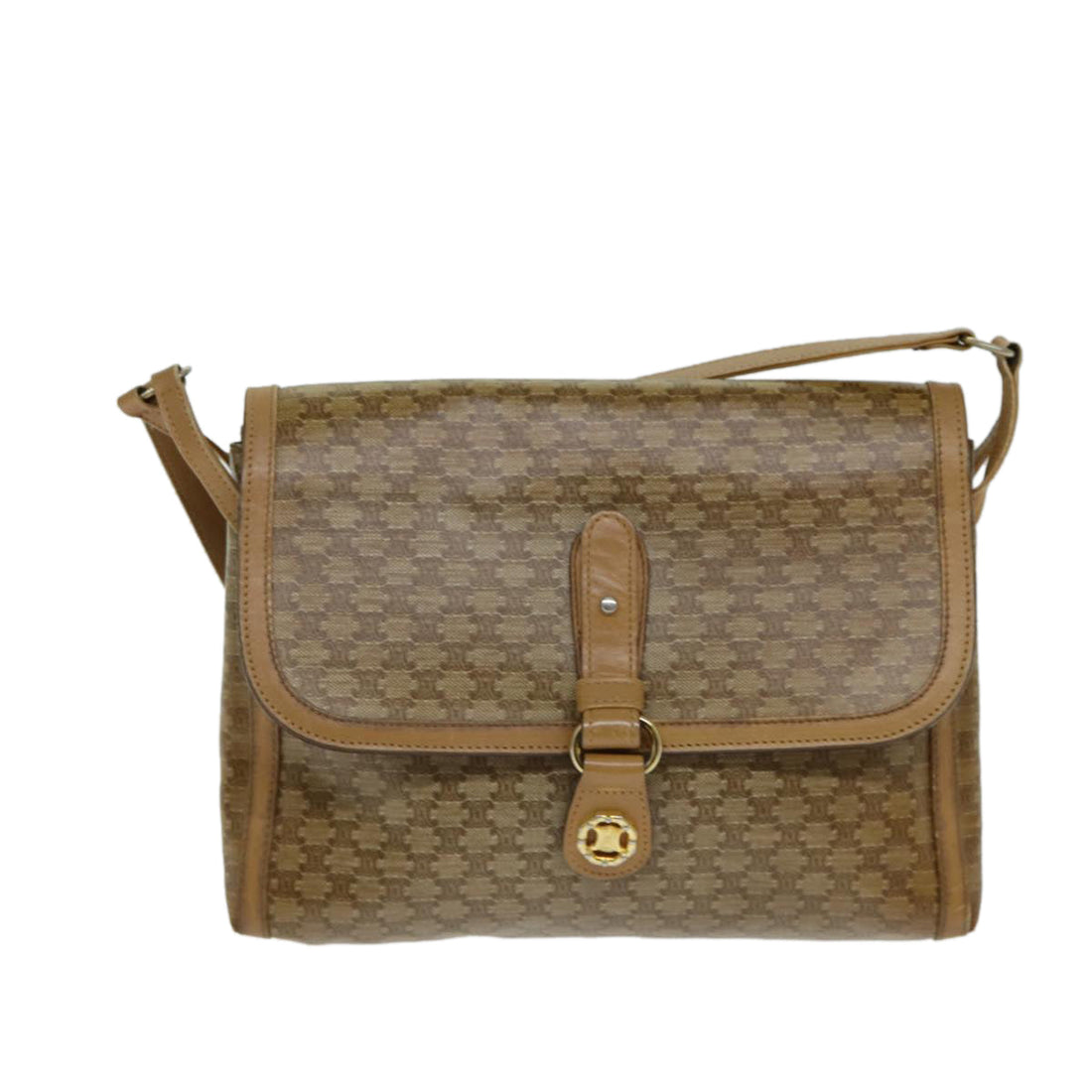 CELINE Macadam Canvas Shoulder Bag Beige Auth 83128