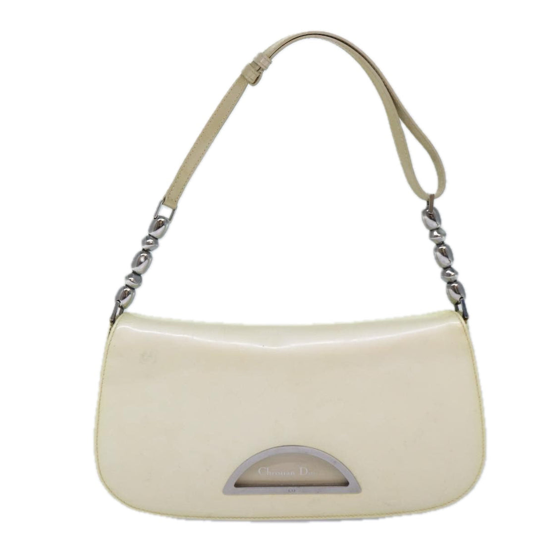 CHRISTIAN DIOR Shoulder Bag Enamel White Auth 86173