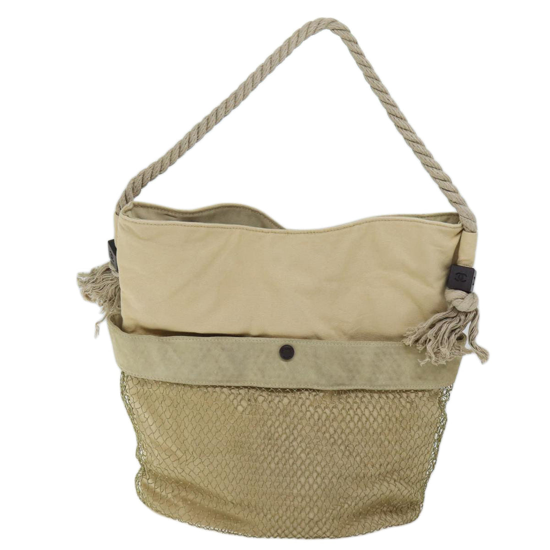 CHANEL Shoulder Bag Canvas Beige CC Auth 70461