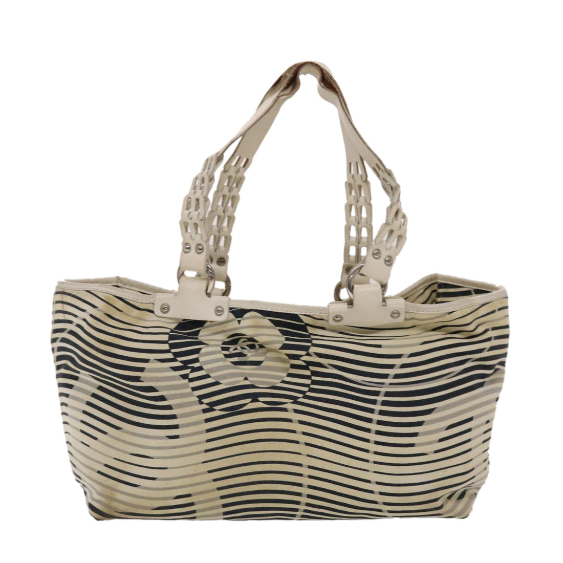 CHANEL Shoulder Bag Canvas White CC Auth bs6944