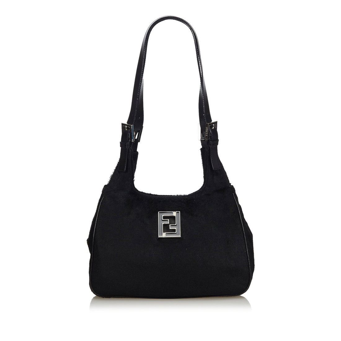 Fendi Black Pony Hair Natural Material Shoulder Bag Italy