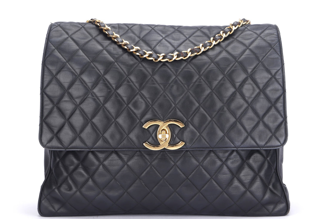 CHANEL VINTAGE BLACK COLOR LAMBSKIN GOLD HARDWARE SHOULDER BAG (152xxxx) WIDTH 40CM, WITH DUST COVER, NO