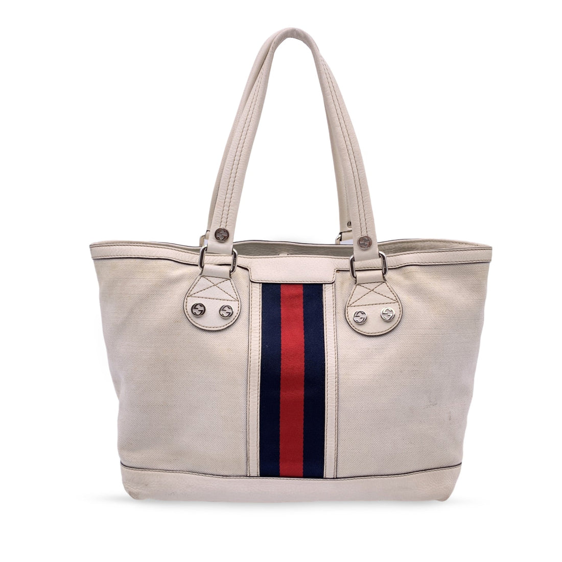 GUCCI White Canvas Web Sunset Tote Shopping Shoulder Bag