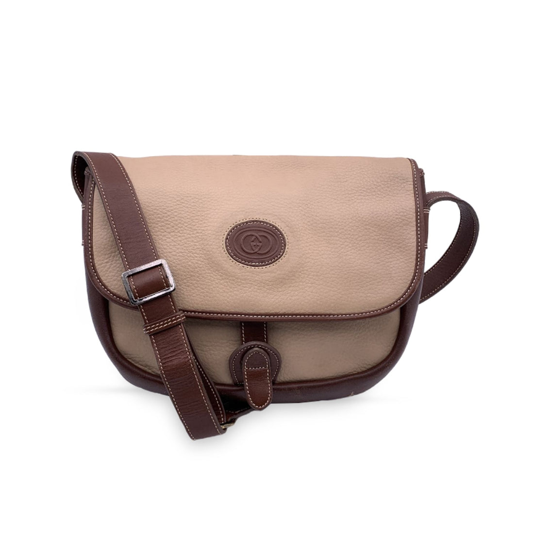 Gucci Vintage Bicolor Shoulder Bag.Flap Closure.Beige And Brown Leather.Front Flap Closure.1 Open Pocket Under The...