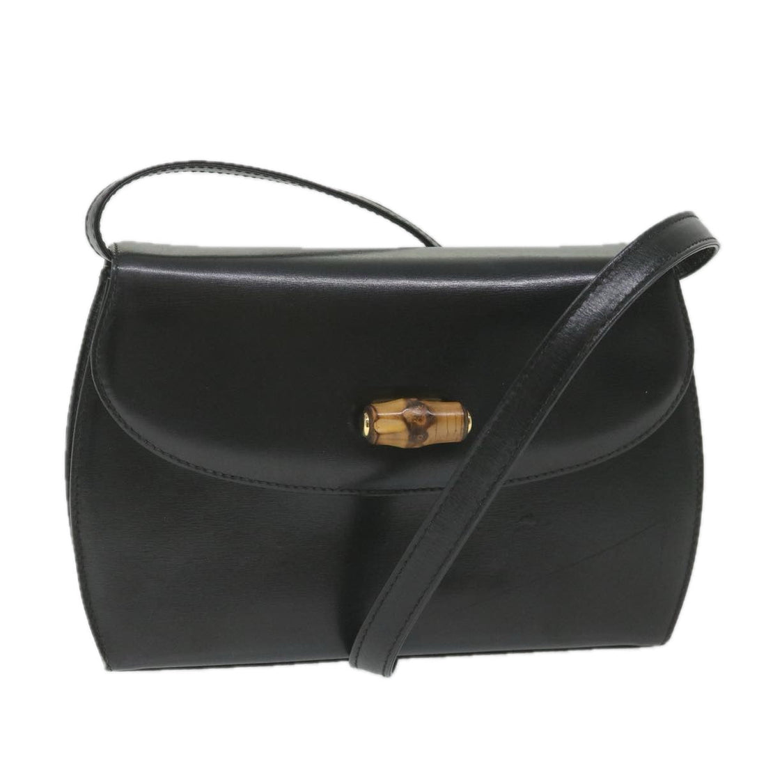 GUCCI Bamboo Turn Lock Shoulder Bag Leather Black 004 46 0474 Auth yk9494BRAND : GUCCI...