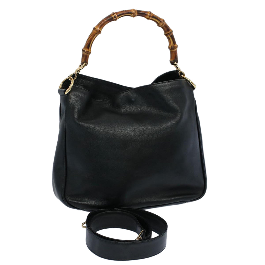 GUCCI Bamboo Shoulder Bag Leather 2way Black 001 2123 1633 Auth bs9068
