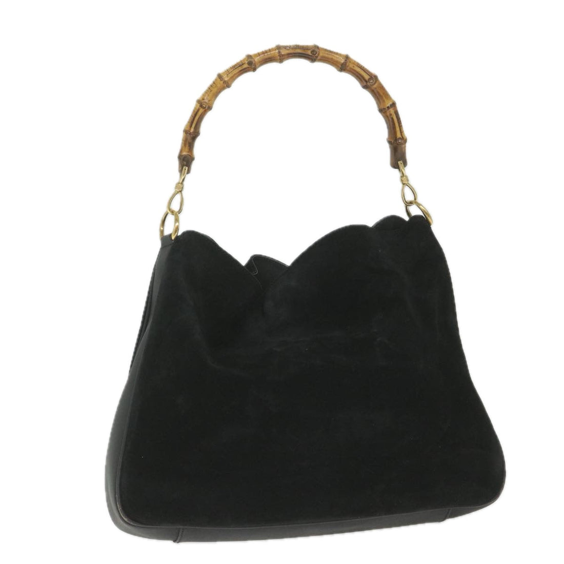 GUCCI Bamboo Shoulder Bag Suede Black 0012058 1577 0 Auth ac2295