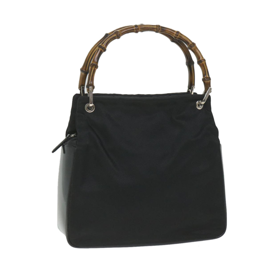 GUCCI Bamboo Shoulder Bag Canvas Black 000 0580 0166 Auth bs9446