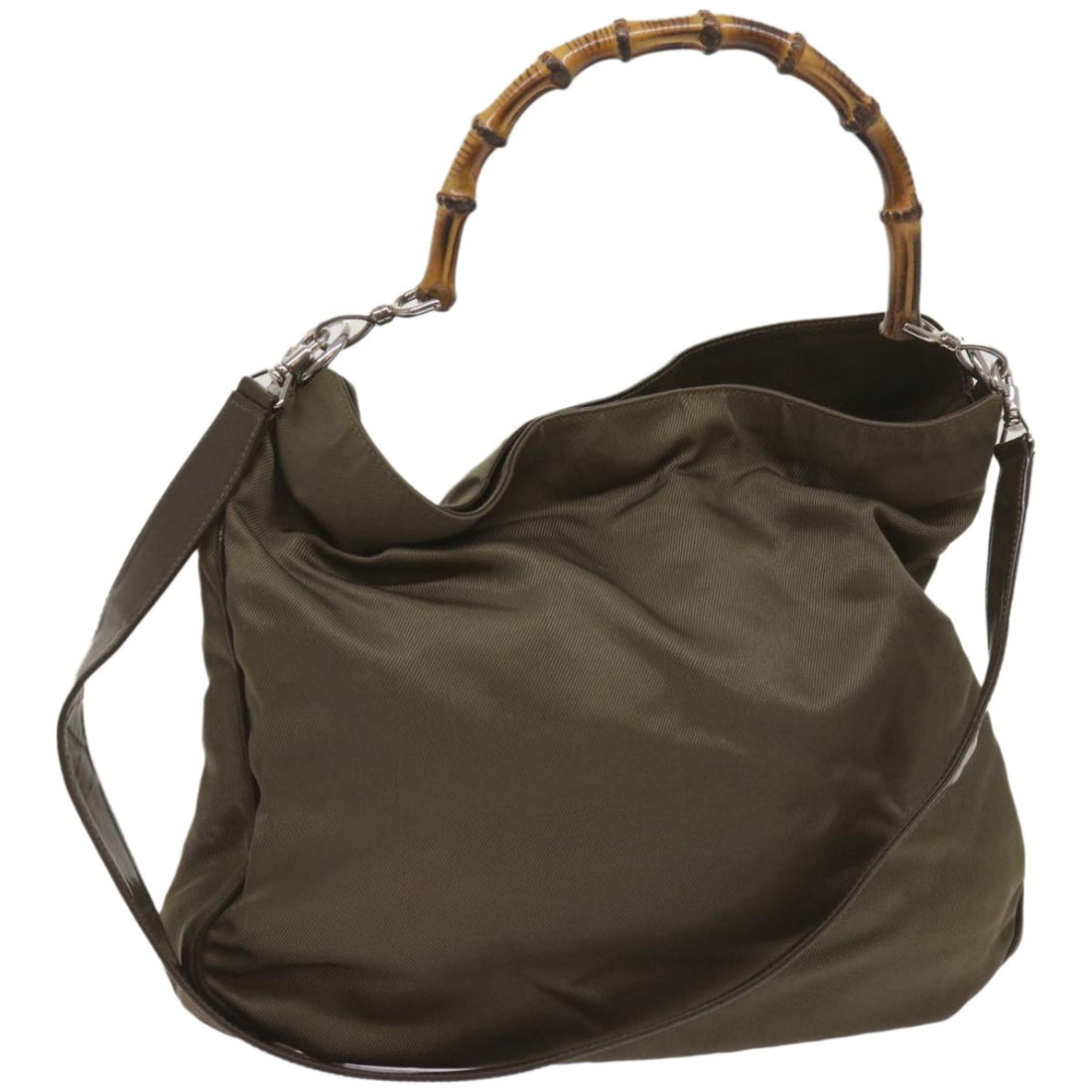 GUCCI Bamboo Shoulder Bag Nylon 2way Khaki 001 2123 1577 Auth 66397