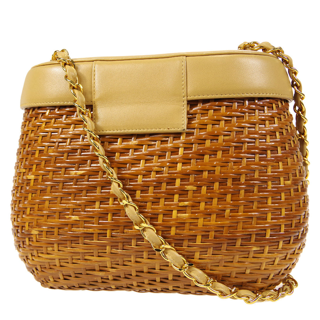 CHANEL Chain Basket Shoulder Bag Beige Straw